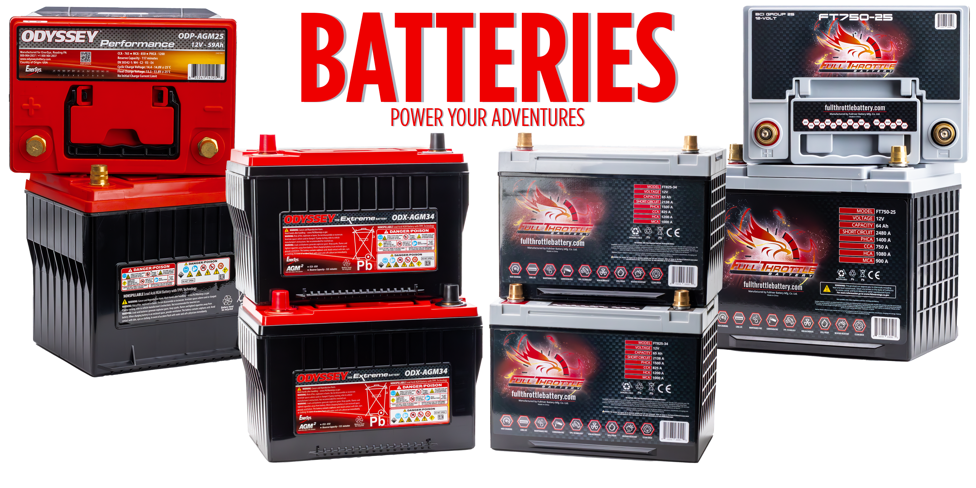 We stock Odyssey and Full River brand batteries in our office. We get monthly shipments direct from the factories, so you always get fresh new batteries. Can your local auto parts store say that?