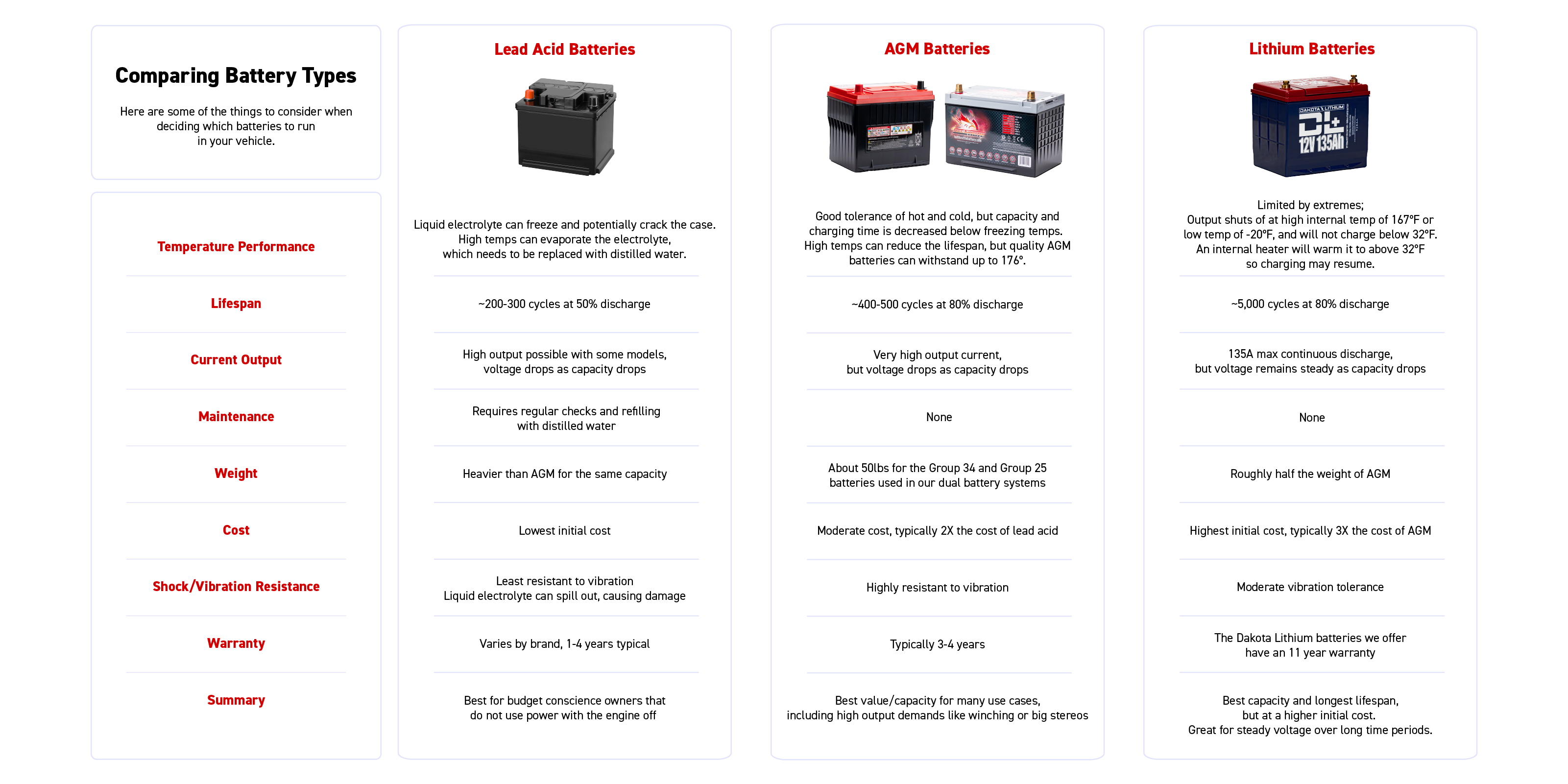 We recommend AGM batteries in our dual battery kits. Learn more ->