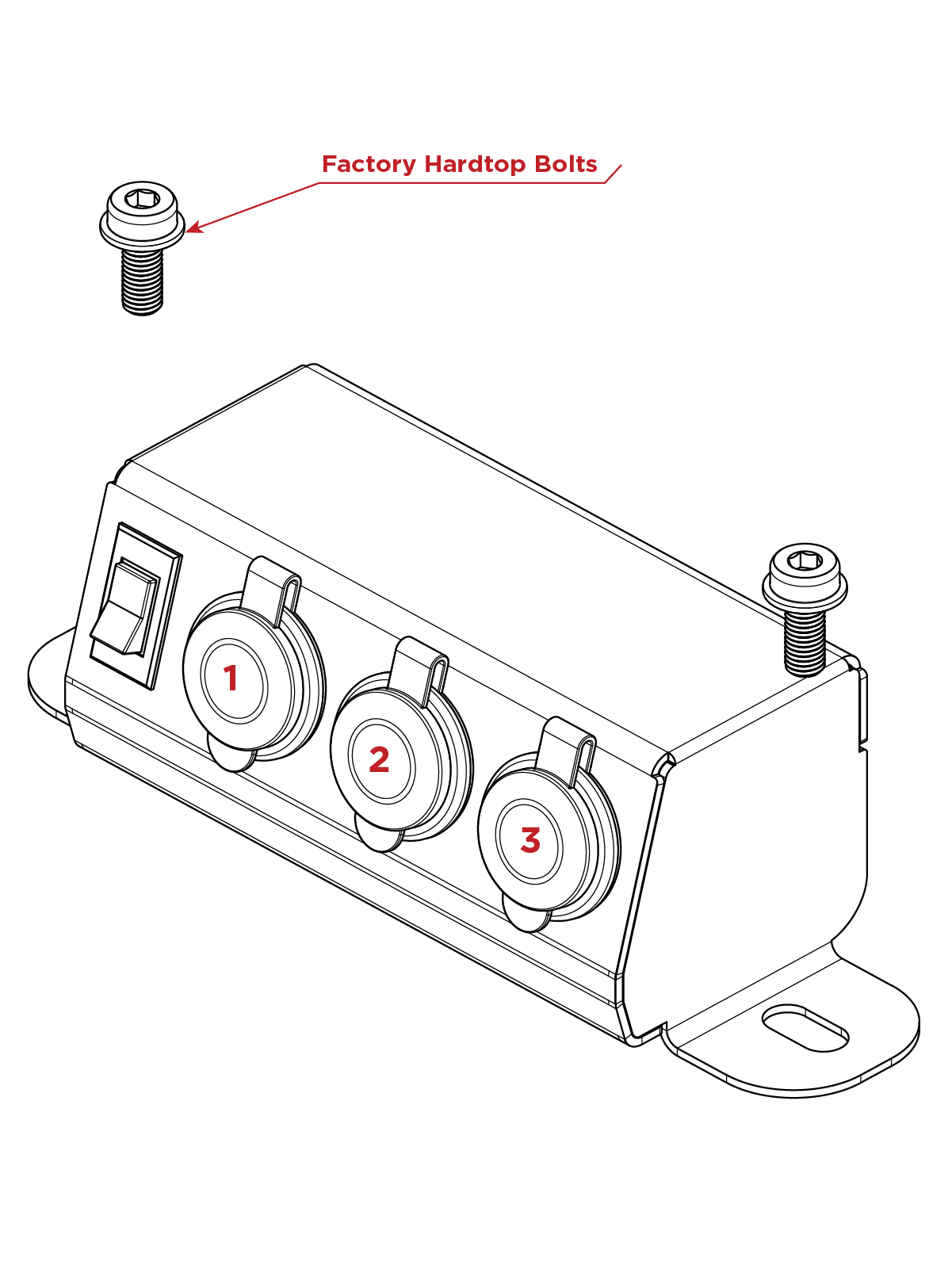 Uses the factory hard top bolts to mount with or without the hard top on.