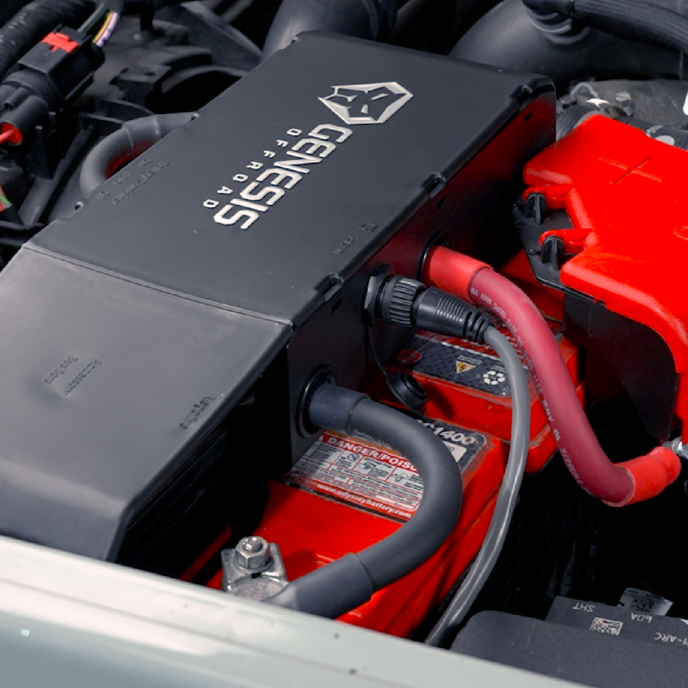 Route the 13' long cable through the firewall and plug it into the Genesis Offroad Power Hub.