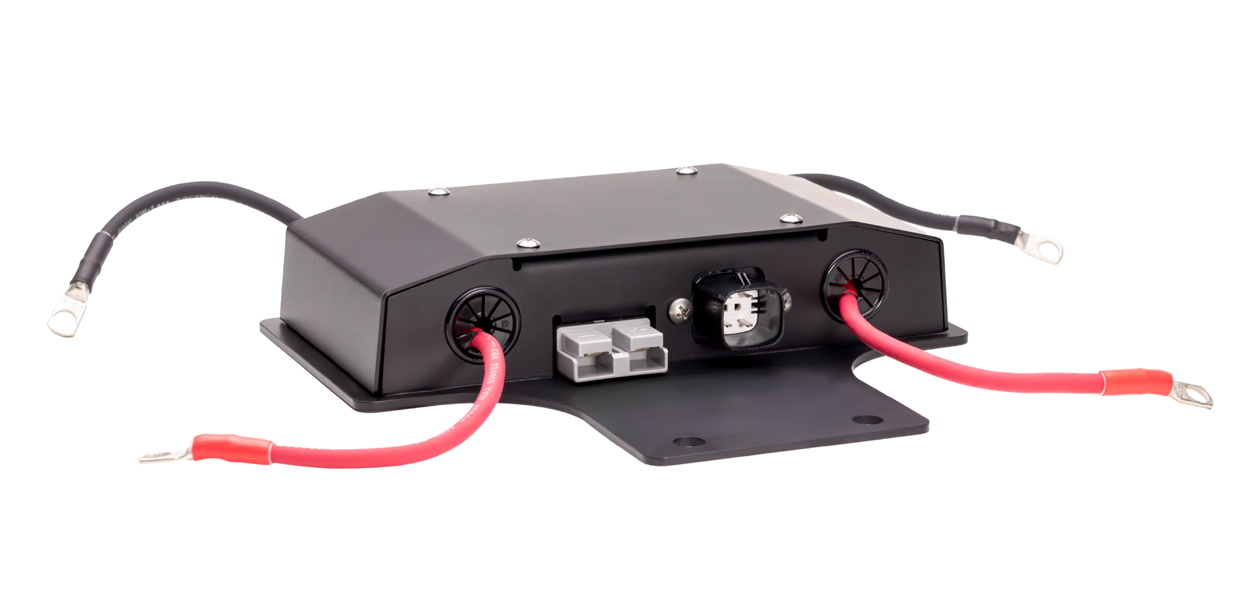 The Omega system's battery cables are made with 8ga heavy duty, high strand count, pure copper welding cable. Why welding cable instead of battery cable? It's more flexible, more conductive, with a thicker, more abrasion resistant jacket for ultimate durability. The lugs are made of pure copper and tin plated which is more conductive and eliminates corrosion, then covered with an extra thick, adhesive-lined heat shrink material to fully seal the ends of the copper wire for long lasting performance.
