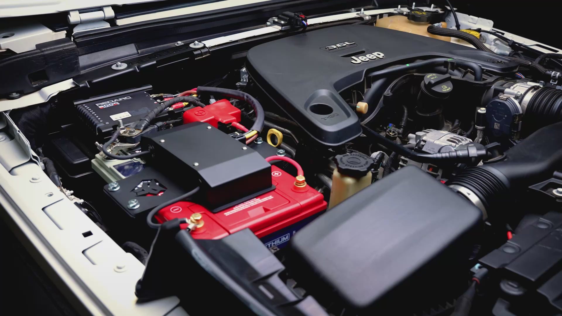 The OMEGA system includes the steel battery tray, a completely pre-wired top lid, and a Redarc Alpha 25 amp DC-DC charger with a mounting bracket. Choose your cranking battery and accessory battery from the options below for the most complete and easiest to install dc-dc charger based dual battery system on the market.