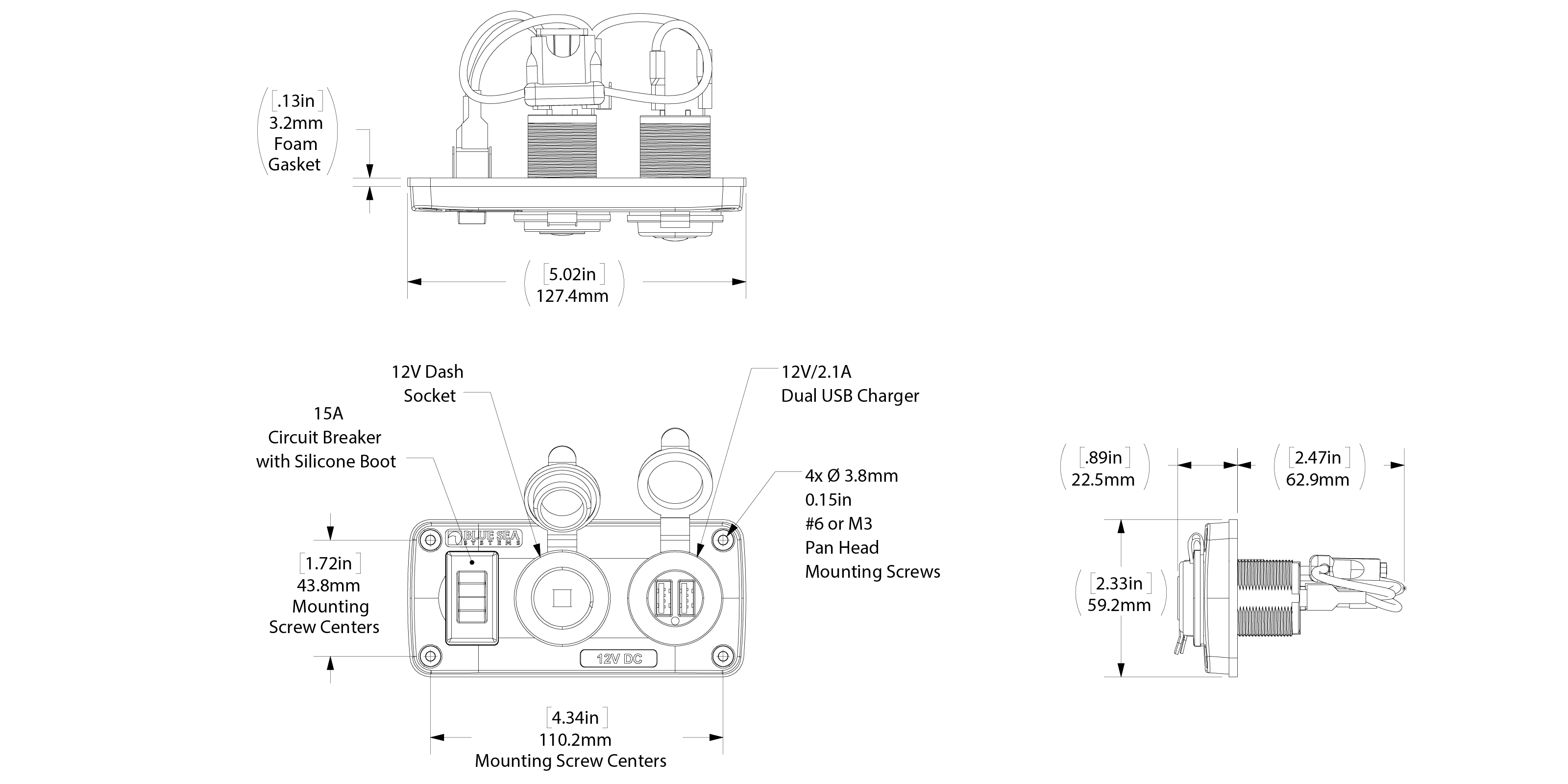 Accessory panels include a 15A circuit breaker switch and a 20' pre-wired harness.